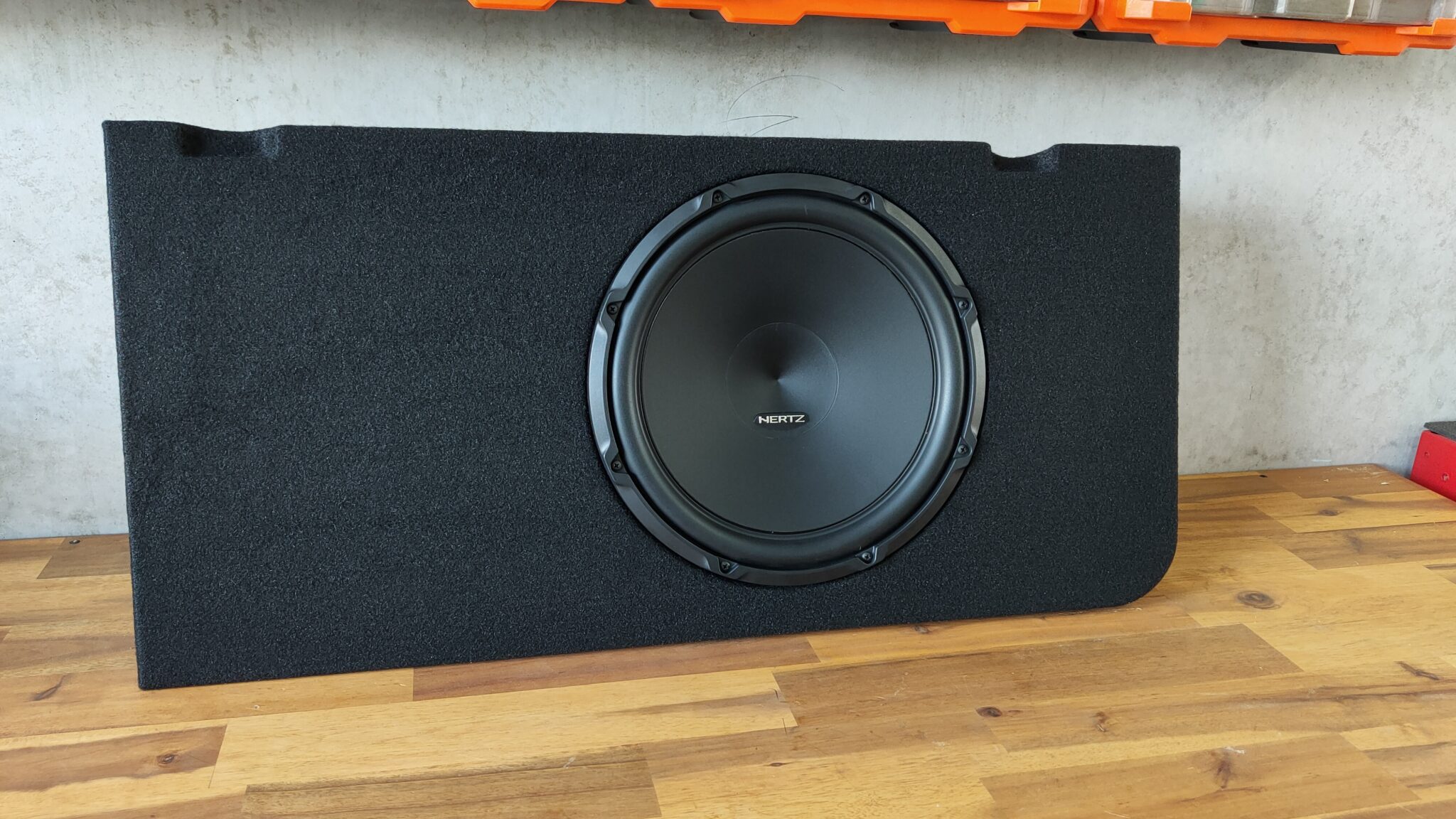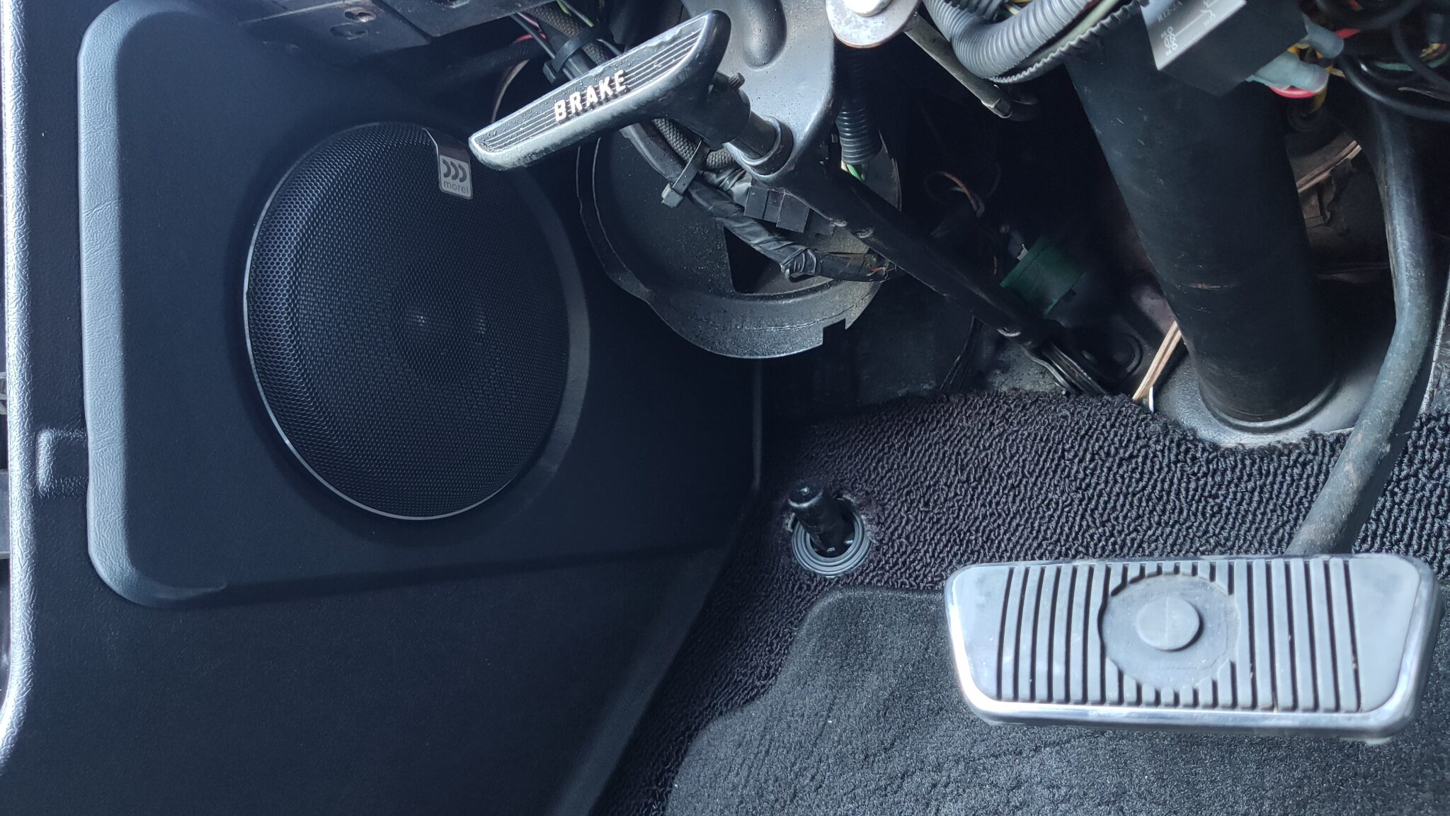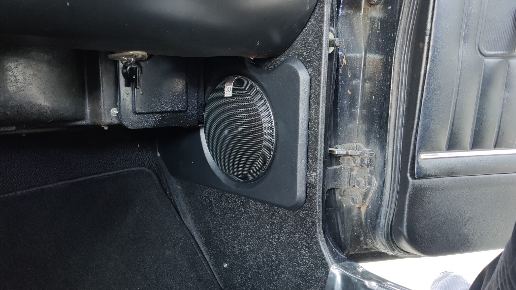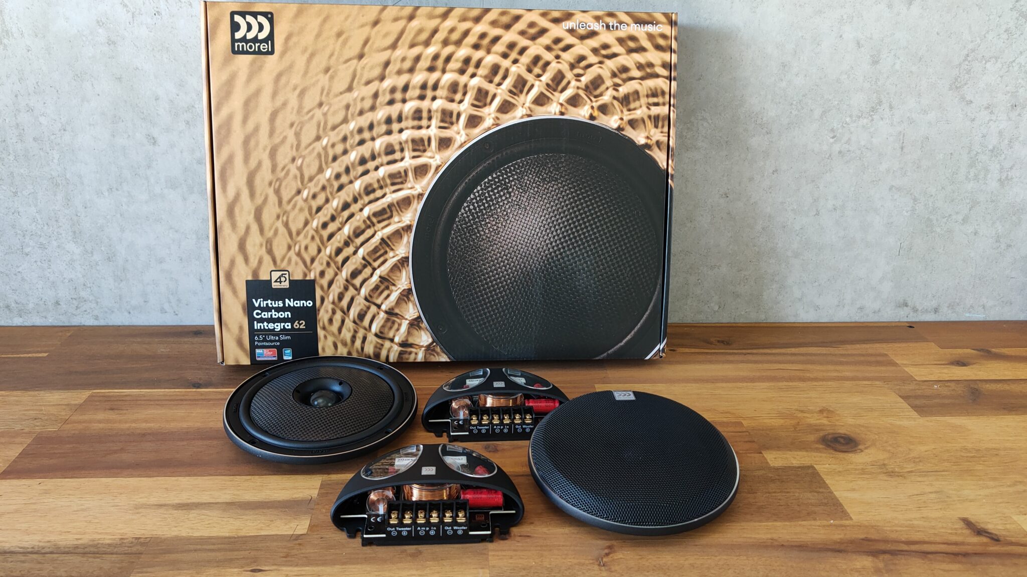 We started off by hiding a Kenwood KMMBT506DAB head unit where the glovebox used to be in a custom made housing. in the kick panels we wanted to keep them a slim as possible so we opted for a set of Morel Virtus Nano Carbon Integra 62 slim line speakers with custom plates to strengthen the kicks while protecting the speakers.