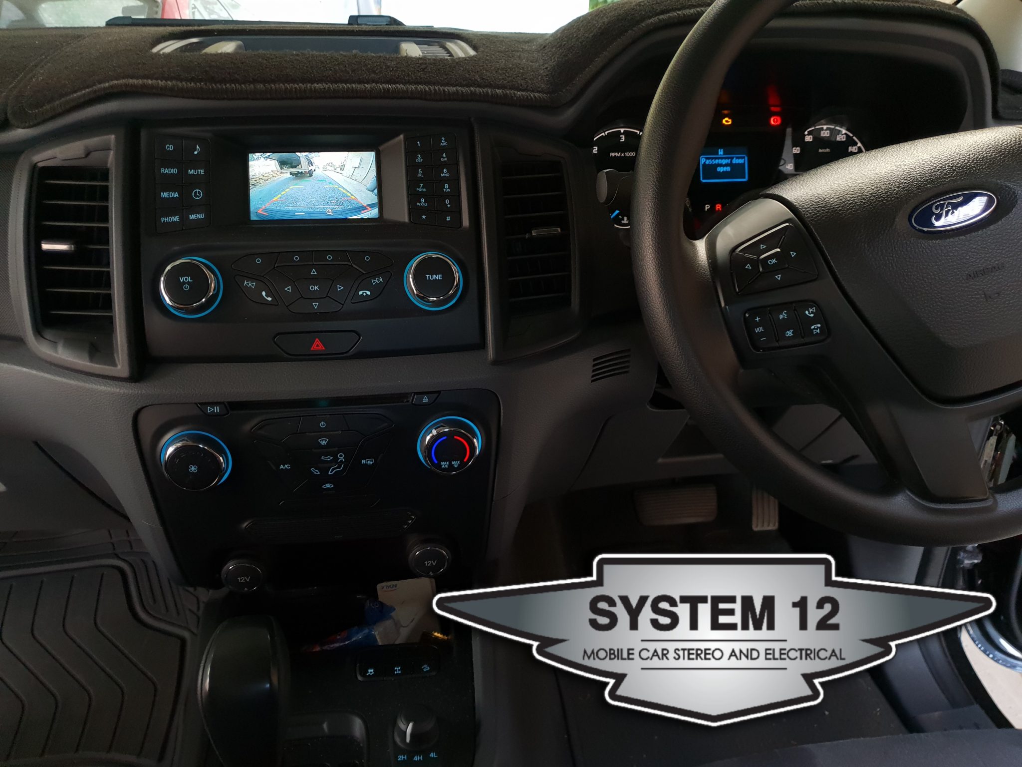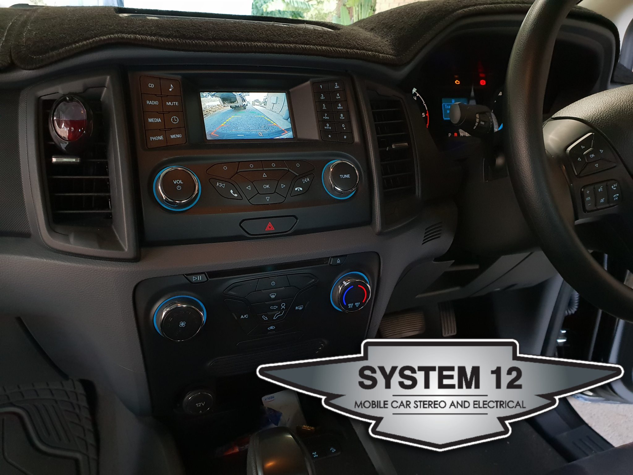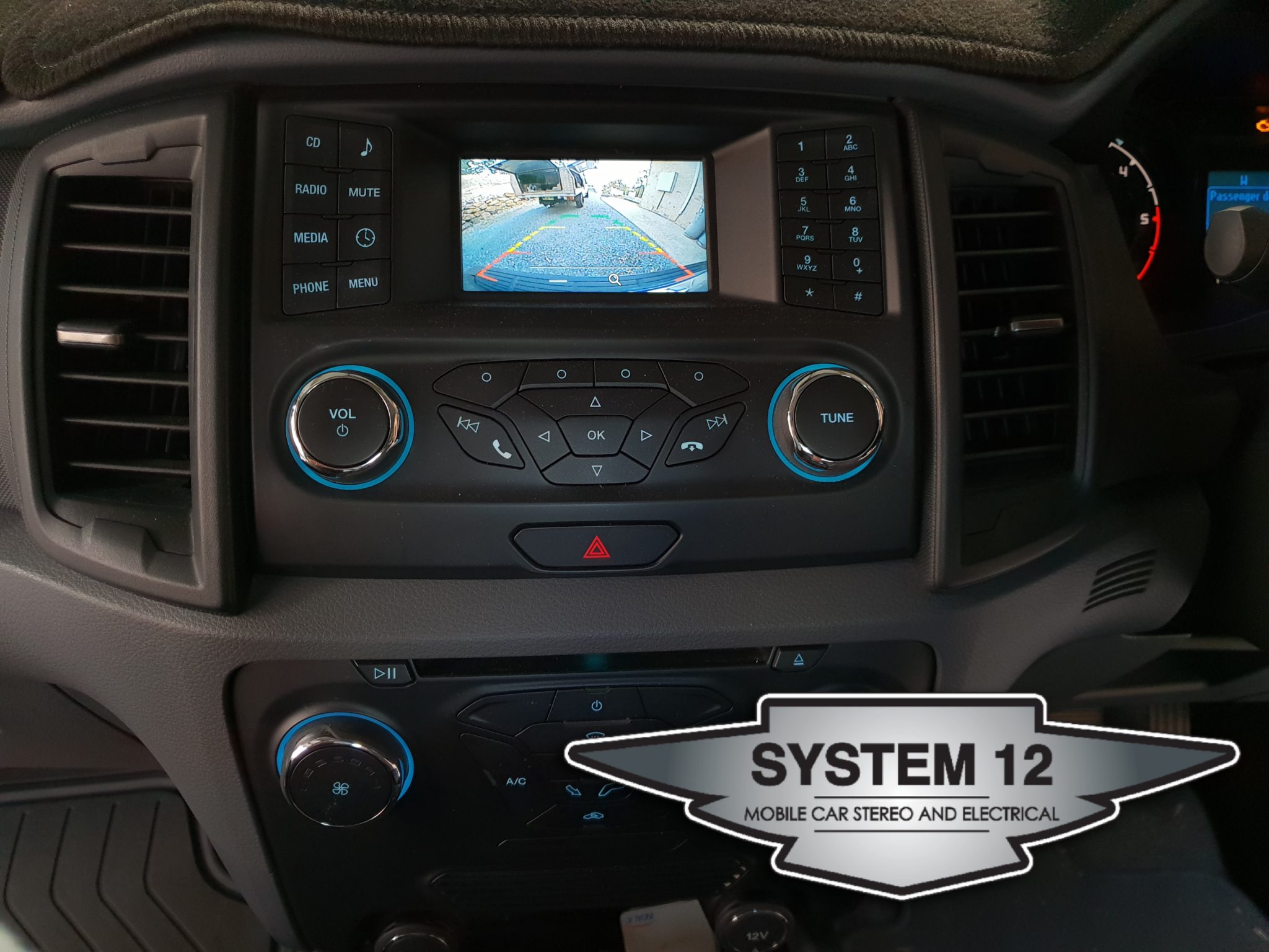 With no factory reverse camera option the client opted for a ASL Automedia factory style Ford Ranger reverse camera mounted into the handle surround. This no only gave a aesthetically pleasing look but also a great view of the rear including the tow bar.