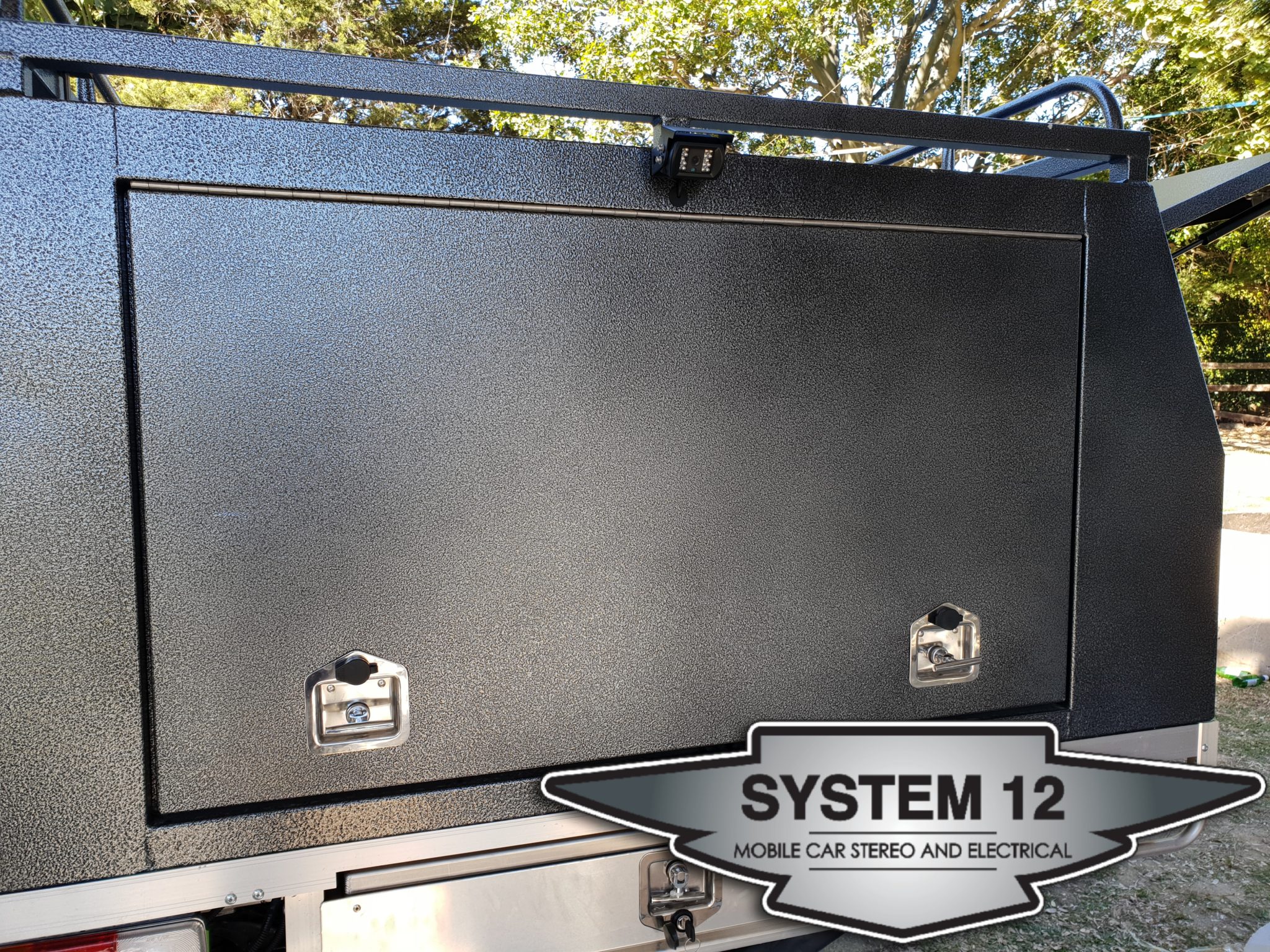 This 2016 Nissan Navara was fitted with a smick looking rear canopy. The only down side the client could no longer see behind while driving. System 12 came to the rescue with a Parkmate OEM style mirror monitor and Mongoose heavy duty camera.