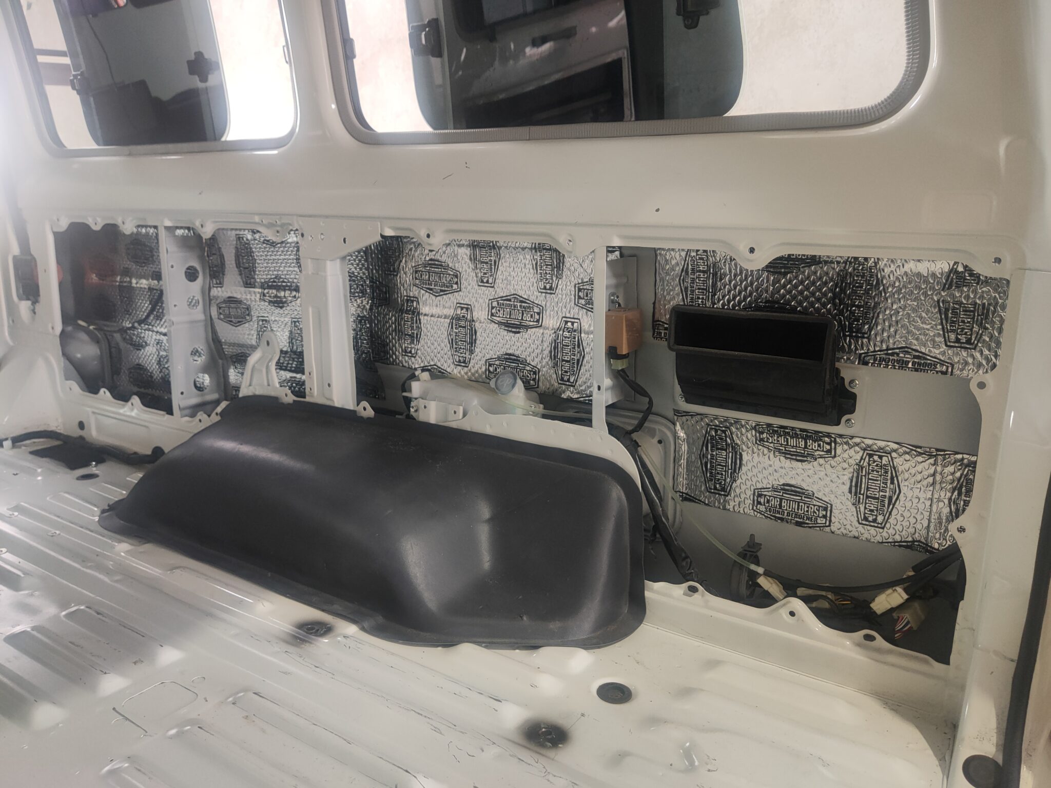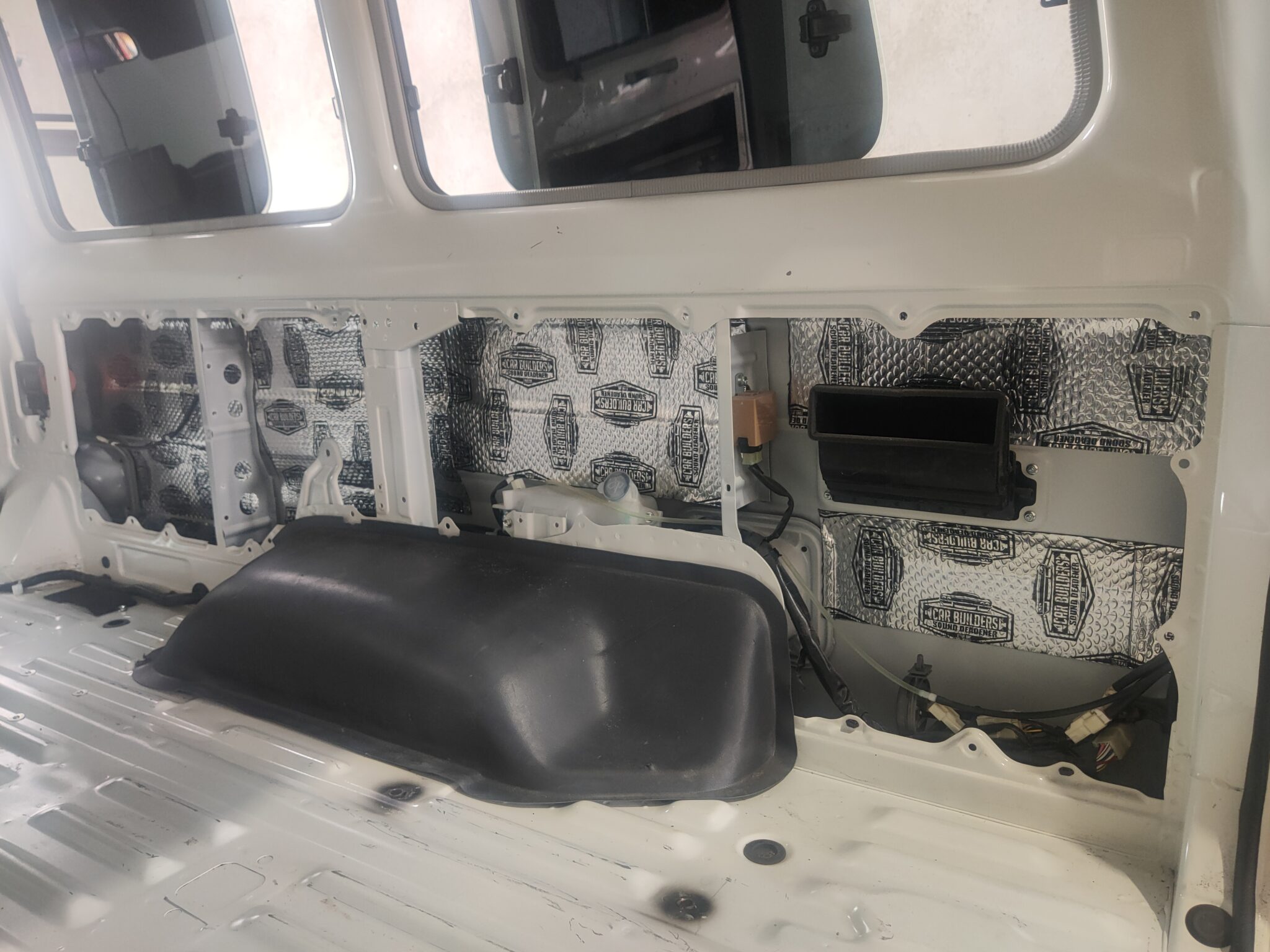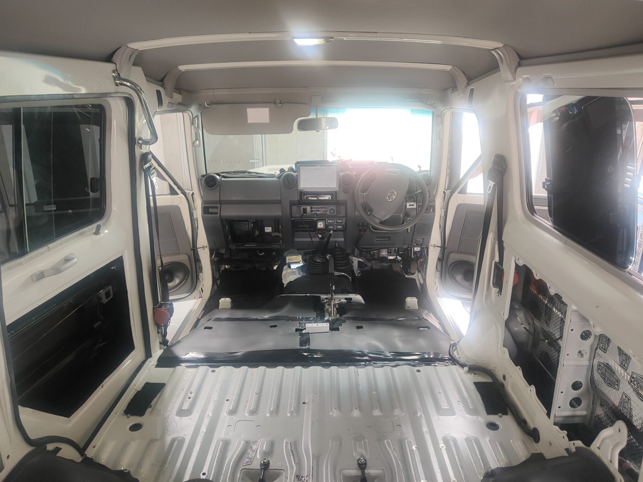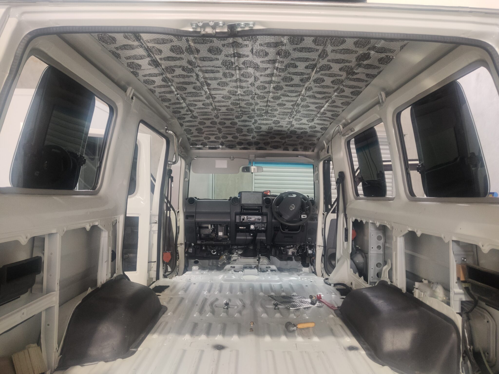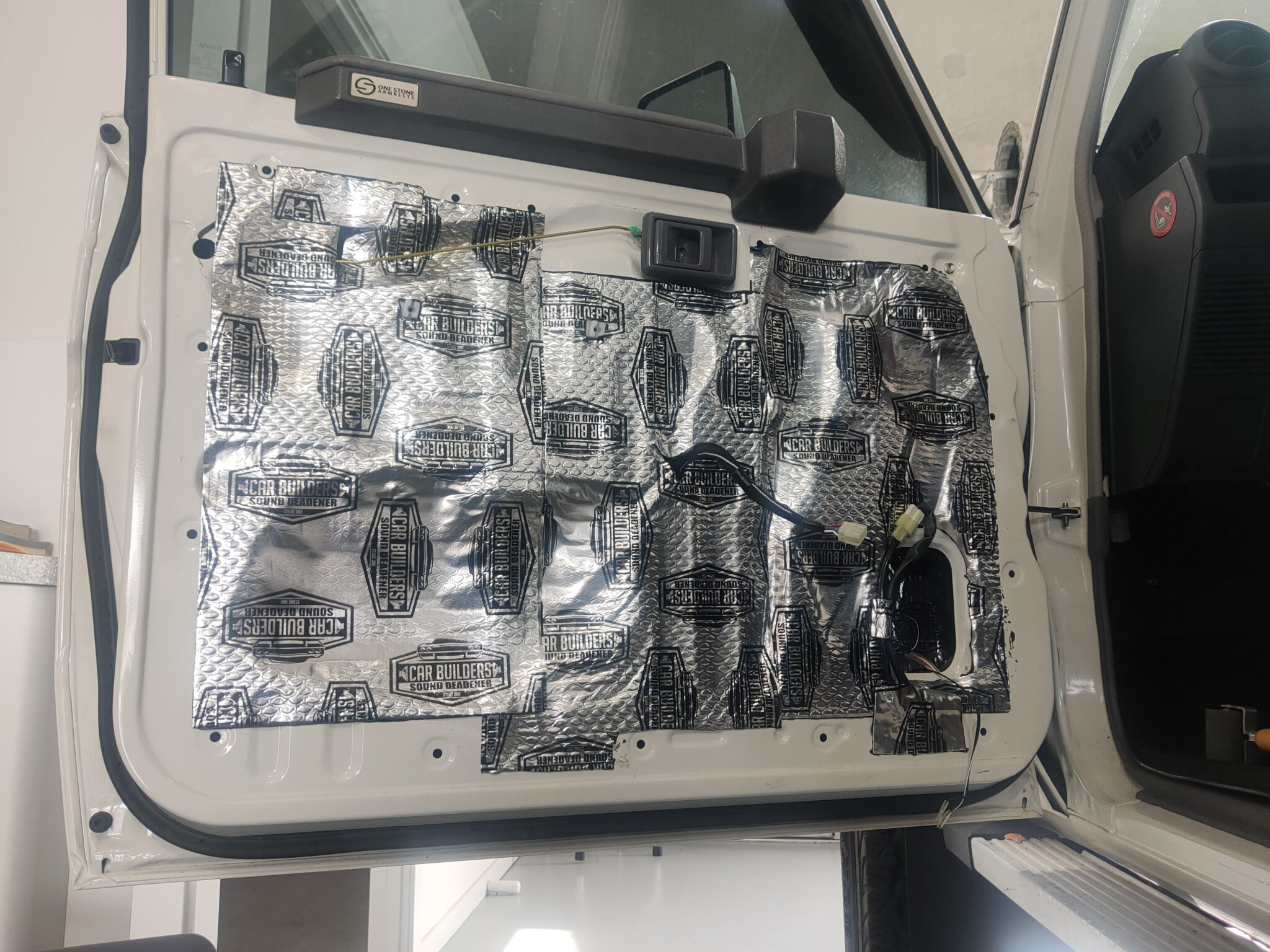 Here we applied Stage one deadener to the Roof, Doors, Rear sides and Front cab floor area