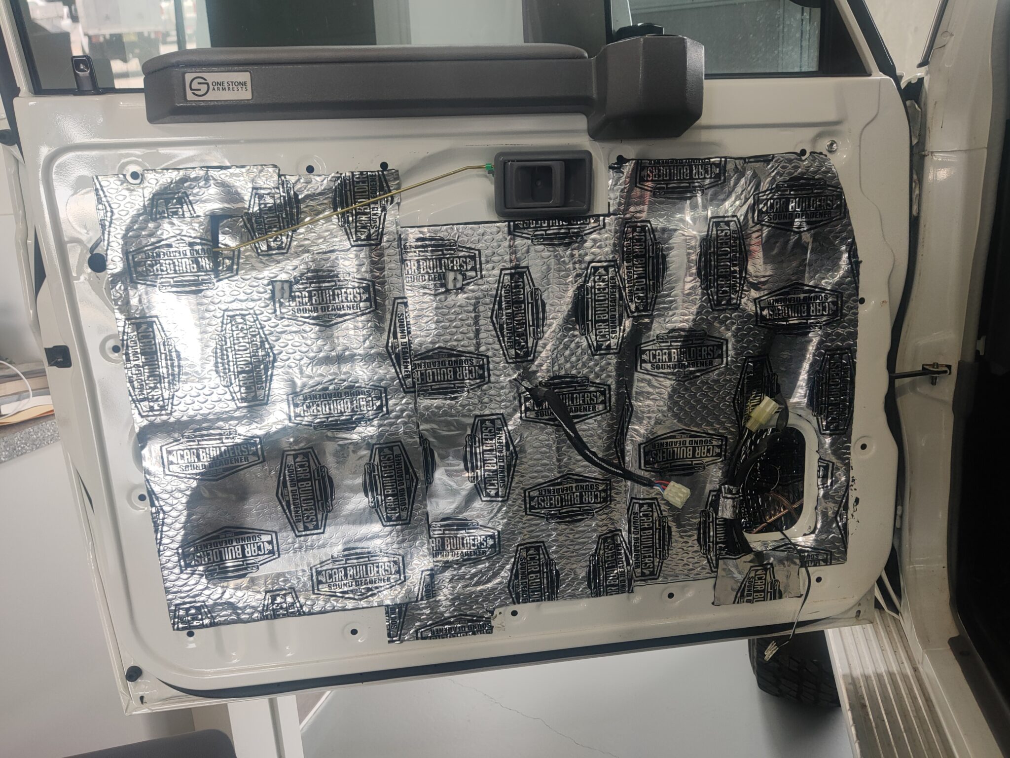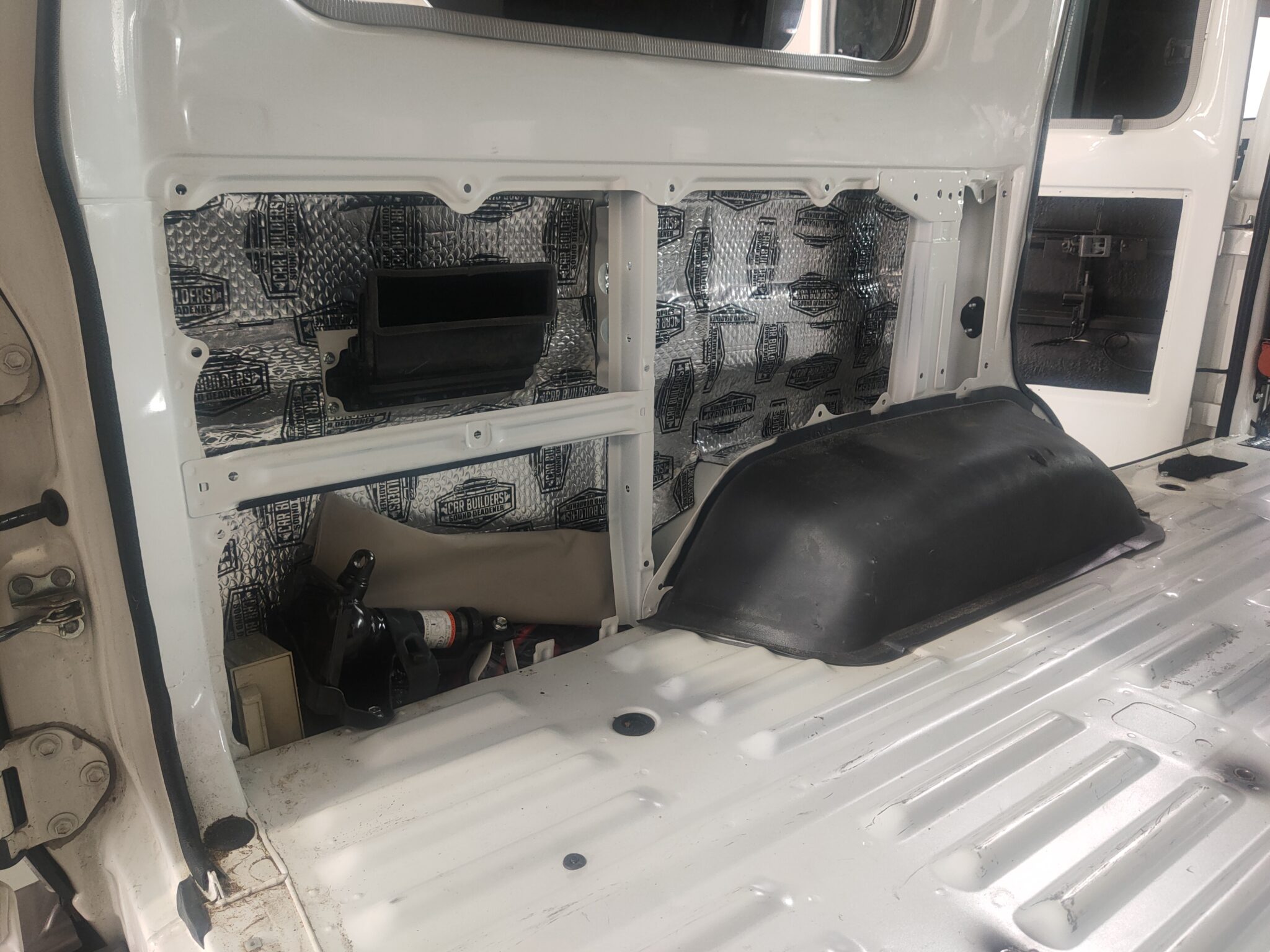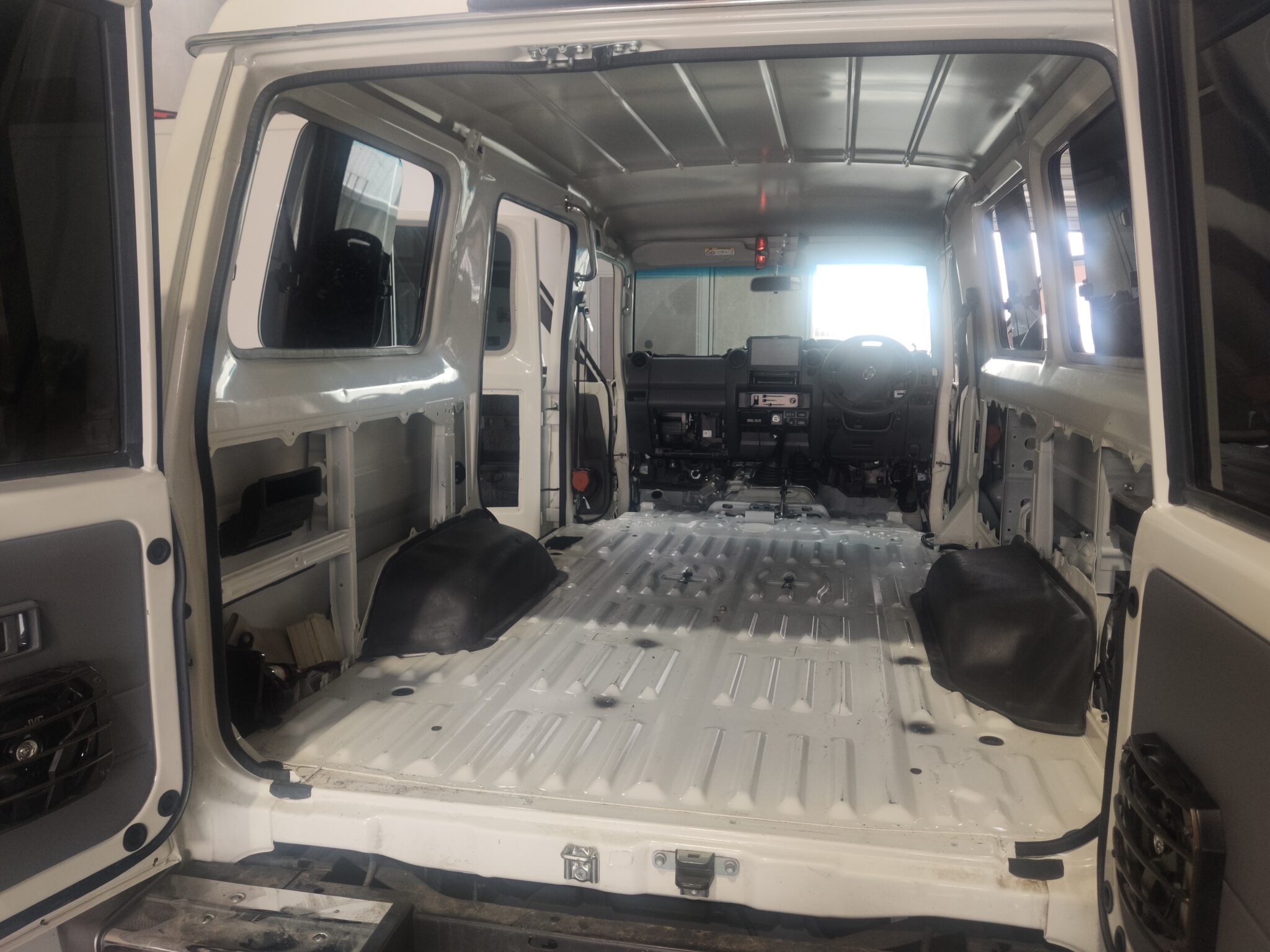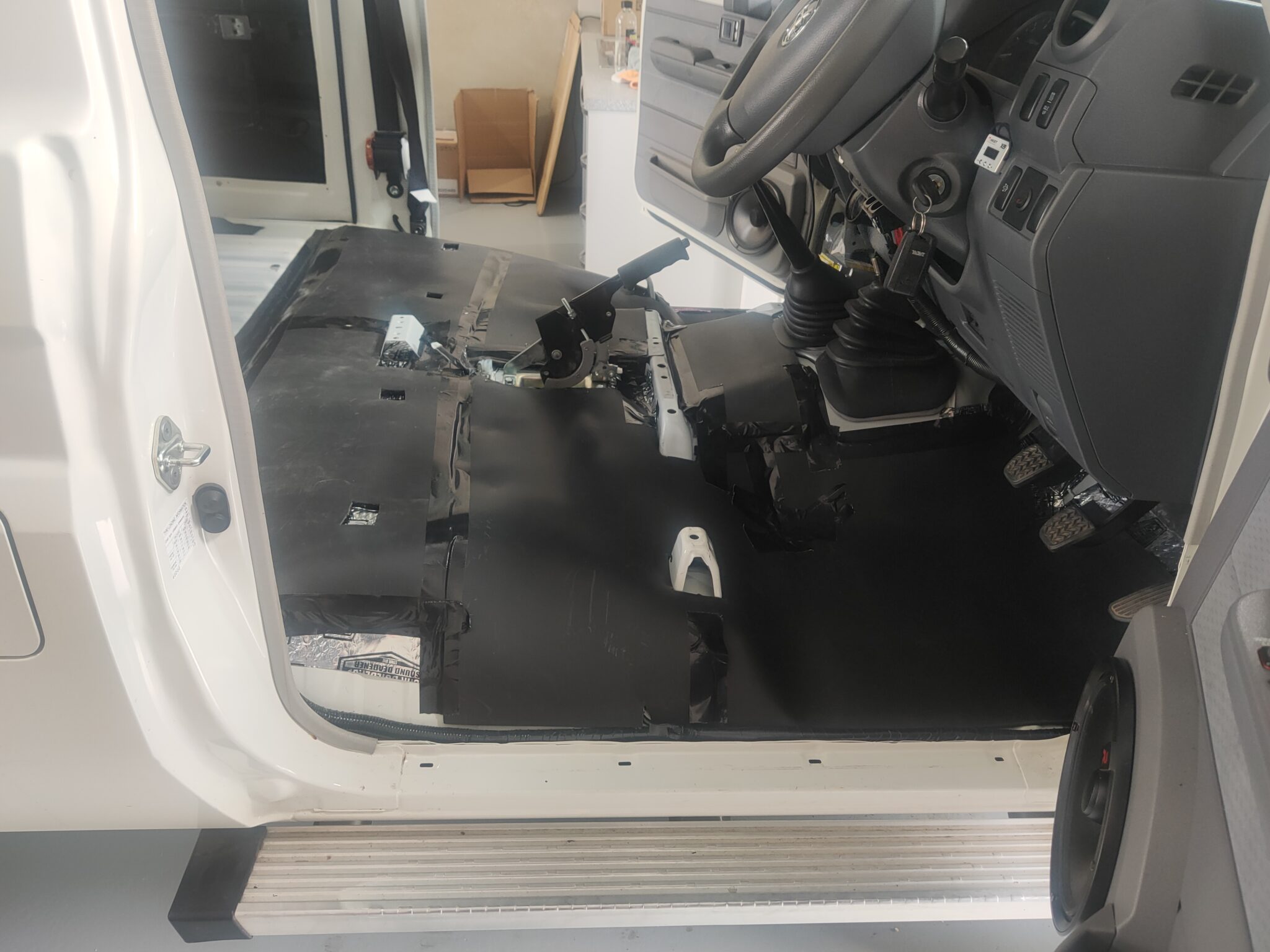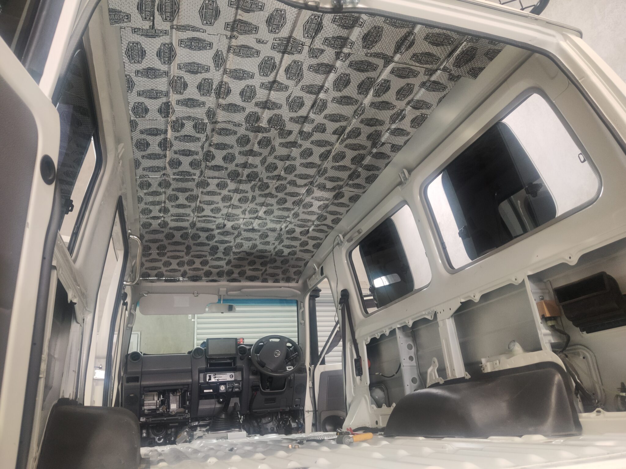 Here we applied Stage one deadener to the Roof, Doors, Rear sides and Front cab floor area